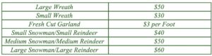 Along with our fresh Christmas trees, Foothills Christmas Trees offers a wide selection of holiday essentials, including wreaths, fresh-cut garland, and handcrafted wooden reindeer and snowman decorations.