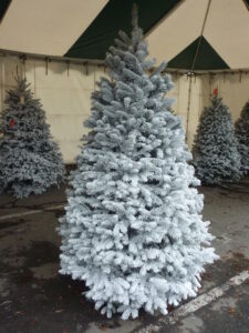 Dreaming of a snowy tree? Foothills Christmas Trees offers a variety of pre-flocked options, as well as custom flocking. Simply choose your tree, let us know how much flocking you’d like, and pick it up the next day beautifully finished. Custom flocking is available at $12 a foot.